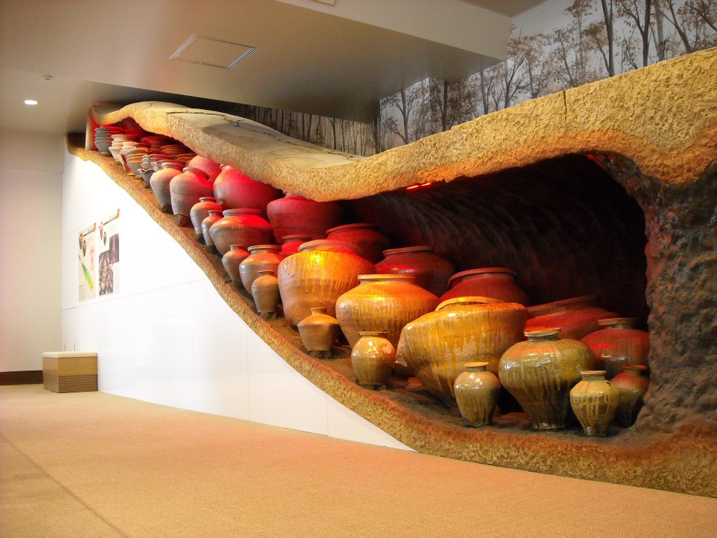 越前古窯研究の第一人者である水野九右衛門氏とその協力者が鎌倉時代の穴窯を参考にして築いた「九右衛門窯」の模型と、焼成実験で生み出された成果品を展示しています。(2階常設展示室)