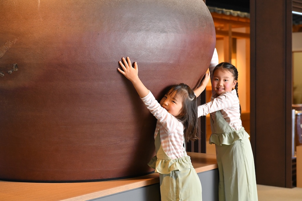 両手を広げてもかかえきれないほどの大壺に素手で触れたり、実際の越前焼を使ったコーディネート体験を行っています。見るだけでなく体験することで身近に越前焼を感じられるコーナーです。