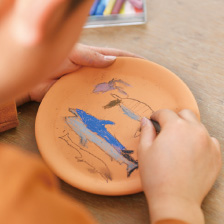 越前焼のお皿に楽しく絵を描く絵付け体験プラン